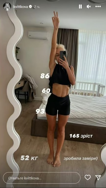 В своем посте Квиткова отметила, что после того как набрала мышечную массу, ее вес составляет 52 килограмма при росте 165 сантиметров.