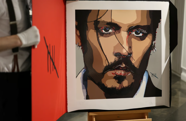 60-летний Джонни Депп сказал, что картина стоимостью 1950 фунтов является отражением "болезненных" пяти лет, в течение которых он был вовлечен в ожесточенную судебную битву со своей бывшей супругой Эмбер Херд.
