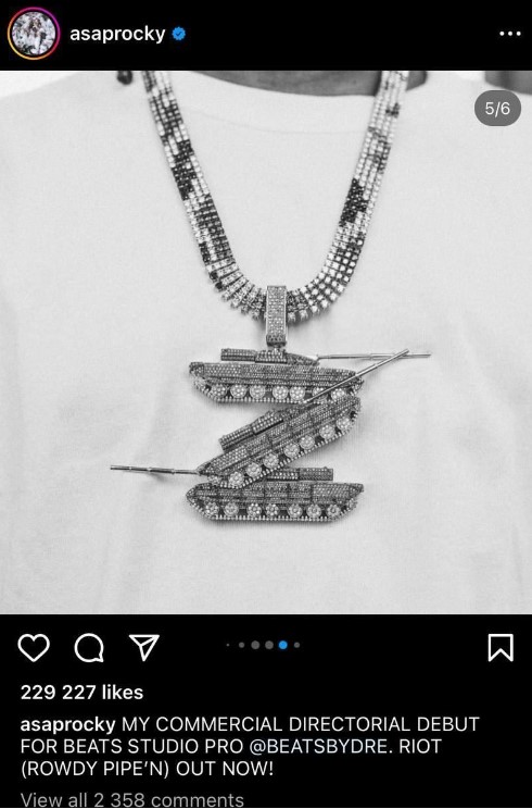 Что именно этой подвеской хотел сказать ASAP Rocky, неизвестно. Но тот факт, что рэпер использовал российскую Z-свастику, да еще и сделанную из танков, очень возмутил пользователей. Они завалили артиста гневными комментариями: