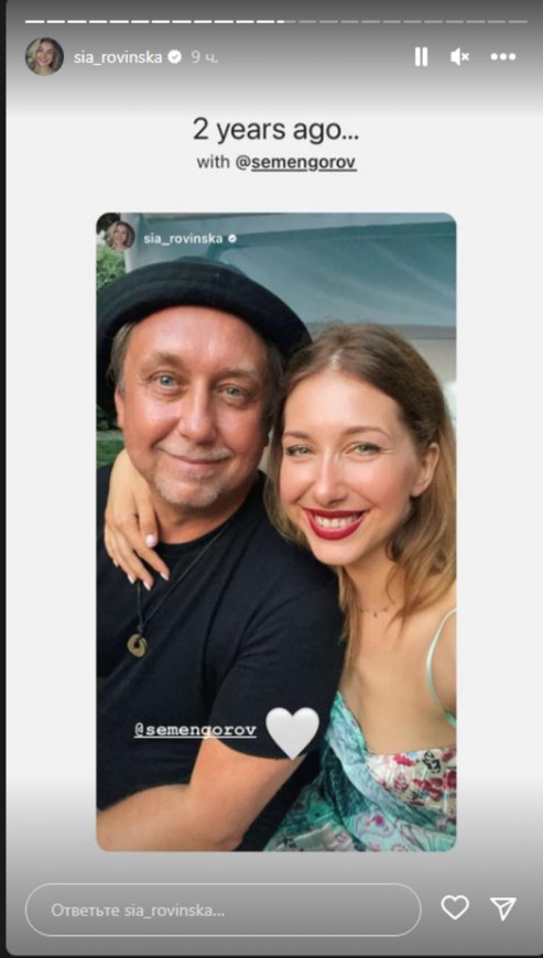 На своей странице в Инстаграм в разделе стор 30-летняя актриса и ведущая, которая на время войны перебралась с мужем и тремя детьми в США, запостила селфи со своим отцом, 52-летним клипмейкером и режиссером новогодних мюзиклов «Вечера на хуторе» ючки» Семеном Горовым. По словам Ровинской, кадр был сделан 2 года назад.