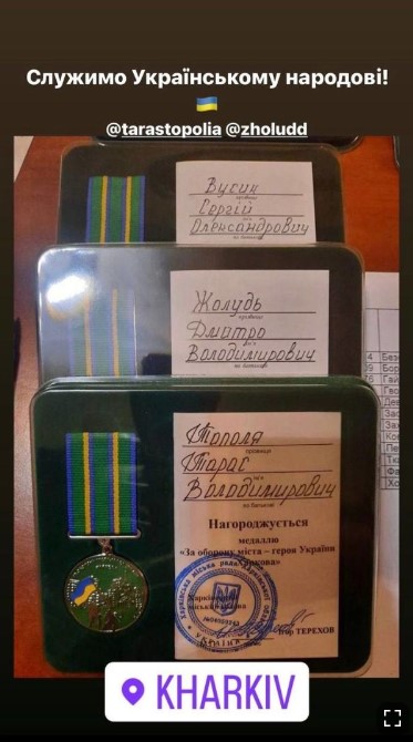 Так, нагрудными знаками наградили Тараса Тополя, клавишник Сергей Вусик и гитарист Дмитрий Жолудь. Музыканты поделились фото с наградами в Instagram.