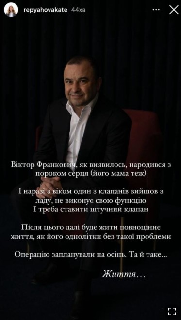 "Виктор Франкович, как оказалось, родился с пороком сердца (его мама тоже). И сейчас с возрастом один из клапанов вышел из строя, не выполняет свою функцию. И надо ставить искусственный клапан. После этого дальше будет жить полноценная жизнь, как и ее сверстники без такой проблемы. Операцию запланировали на осень", — рассказала Екатерина.