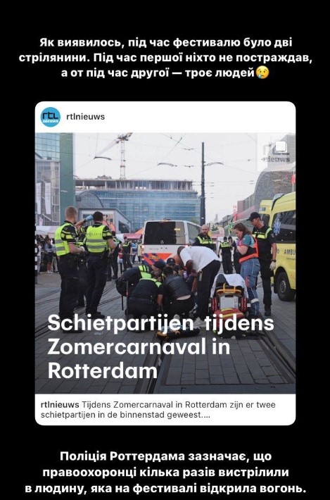 Как выяснилось, во время фестиваля и самого выступления alyona alyona было две стрельбы. Во время первой никто не пострадал, а во время второй – три человека. Что именно стало причиной стрельбы на большом фестивале в Роттердаме, пока неизвестно.