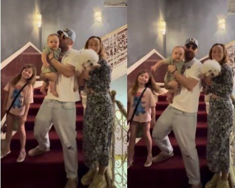 Телеведущий Андрей Бедняков увиделся со своей женой Анастасией Короткой и двумя детьми – дочерью Ксенией и сыном Остапом.