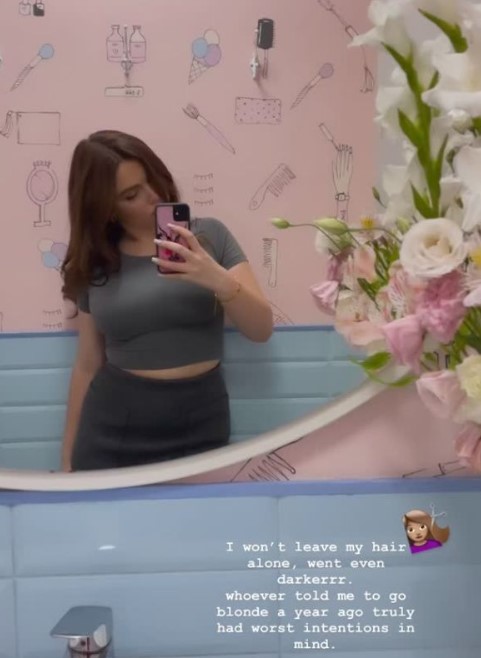 В сторис своей страницы в Instagram Митчелл рассказала, что решилась освежить цвет волос. Теперь, вместо светлых прядей Злата имеет темно-каштановые волосы: