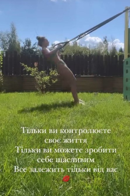 В артистки очень стройное тело. Однако это все результат труда Саливанчук. В Instagram-stories знаменитость показала, как держит фигуру в тонусе. В частности, Анна показала, как занимается спортом и какие спортивные упражнения делает во дворе. Артистка подтягивалась в воздухе, приседала и делала выпад ногами.