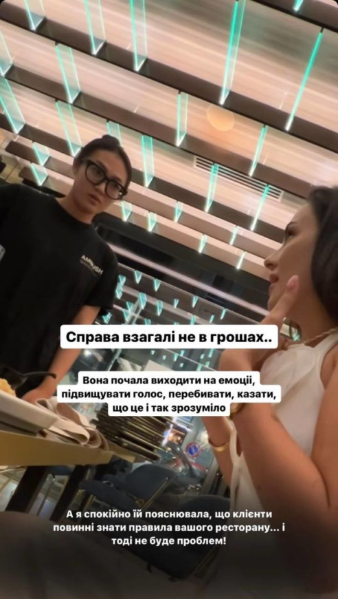 "Дело вообще не в деньгах... Она начала выходить на эмоции, повышать голос, перебивать, говорить, что это и так понятно. А я спокойно объясняла, что клиенты должны знать правила ресторана и тогда не будет проблем", - сказала Анна.