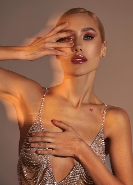 На фото Даша позировала без нижнего белья – тело звезды прикрывала только блестящая накидка. Обнаженную грудь Квиткова прикрыла руками. Образ блогерши дополнил выразительный макияж с красными губами и волосы собранные в элегантный хвост.