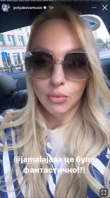 В Instagram-stories артистка приняла сторону певицы. Полякова отметила, что Джамала выступила на благотворительном футбольном матче в Лондоне действительно мощно. Также исполнительница добавила, что артист может исполнять гимн в своей своеобразной манере, потому что таким образом он самовыражается.