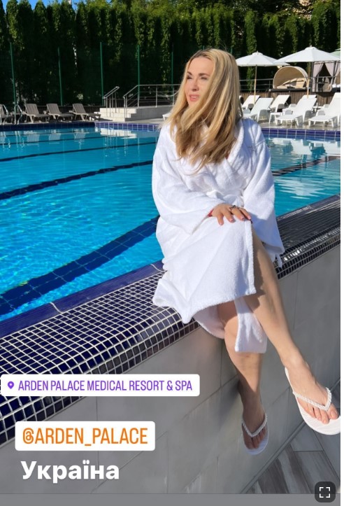 В своих Instagram-stories Сумская показала, как проходит ее маленький отпуск. На фото, которыми поделилась актриса, она позировала в белом махровом халате у бассейна.