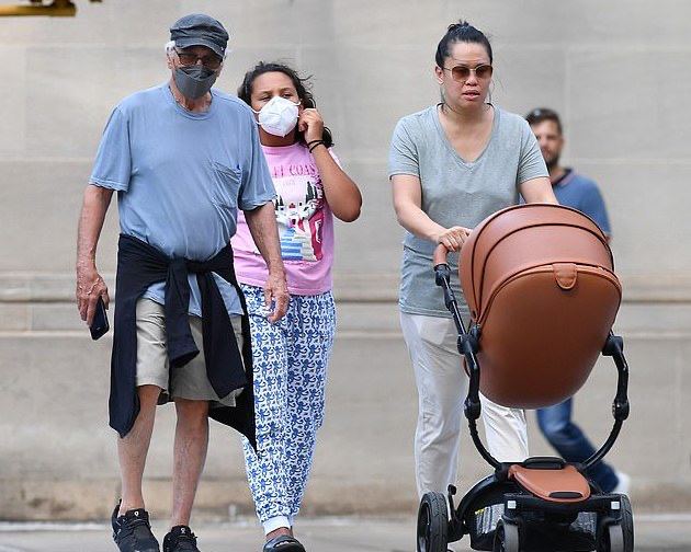 80-летний американский актер Роберт Де Ниро и его возлюбленная, 45-летняя Тиффани Чен, были замечены на прогулке с их новорожденной малышкой Джией Вирджинией Чен Де Ниро в Нью-Йорке.