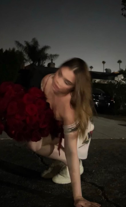 Злата позировала, присев на корточки, опершись рукой об асфальт. В другой руке девушка держала роскошные красные розы. Фото Злата оставила без подписи, лишь добавила геоотметку о том, что находится в Калифорнии.