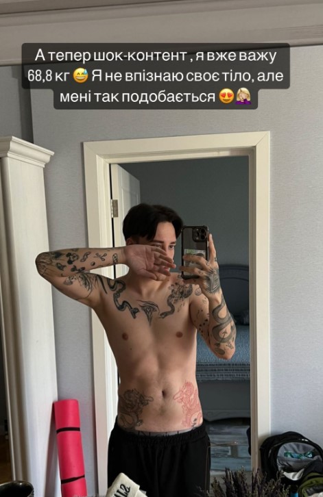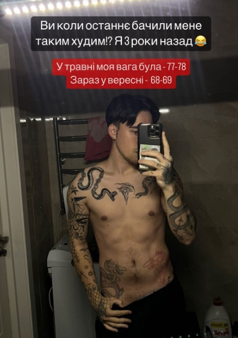 "Шок-контент. Я уже вешу 68,8 кг. Я не узнаю свое тело, но мне так нравится. Вы когда в последний раз видели меня таким худым? Я – три года назад. В мае мой вес был 77-78 кг. Сейчас, в сентябре, 68-69 кг", – рассказал блогер.