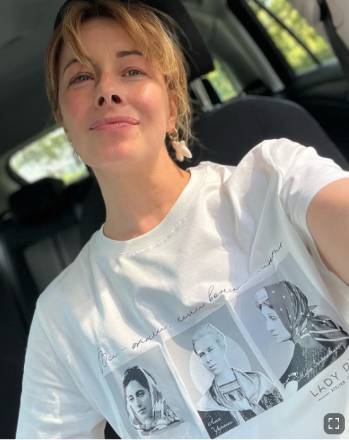 На фотографии Кравец предстает в белоснежной футболке одного из украинских брендов, на которой изображены выдающиеся украинские женщины – Соломия Крушельницкая, Леся Украинка и Мария Заньковецкая. Кстати, такая футболка на сайте бренда стоит 900 грн.