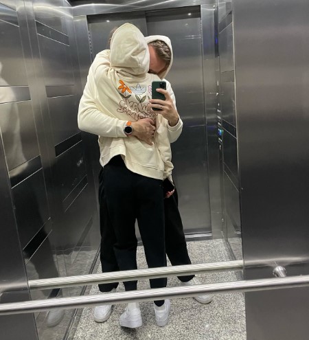 Романтическое фото с любимой Иракли поделился в своих стороз в Instagram. На фото Лиза позировала в крепких объятиях своего мужа в лифте. Милой деталью стало то, что супруги выбрали для выхода парные образы — спортивные костюмы с темными брюками и молочным свитшотом.