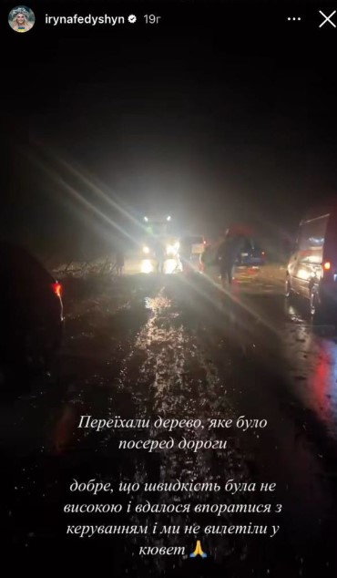 "Мы едва не попали в аварию. Мы заехали в Украину и просто шокированы. Реально, дерево лежит посреди дороги. Переехали дерево, которое было посреди дороги. Хорошо, что скорость была небольшой и удалось справиться с управлением, и мы не вылетели в кювет", – ошеломила знаменитость.