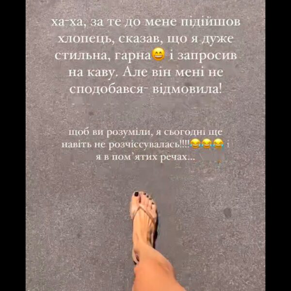 Ха-ха, зато ко мне подошел парень, сказал, что я очень стильная, красивая, и пригласил на кофе. Но он мне не понравился – отказала! Чтобы вы понимали, я сегодня еще не расчесывалась! И я в помятых вещах…”