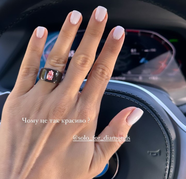 Ксения Мишина показала кольцо с розовым бриллиантом на безымянном пальце