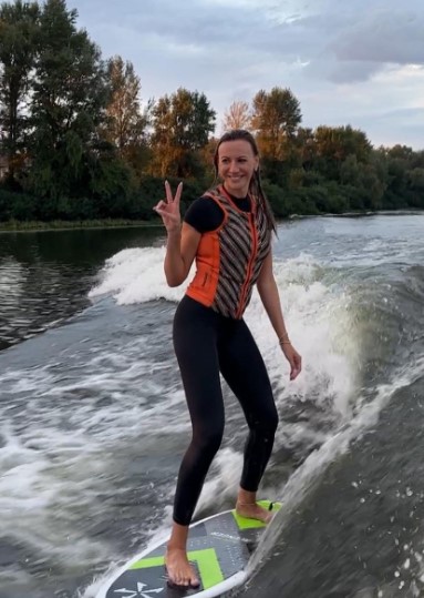 Уже некоторое время знаменитость вместе со своими друзьями занимается вейкбордингом. Во время занятий ведущая учится стоять на специальной доске на воде и выполнять разные трюки.