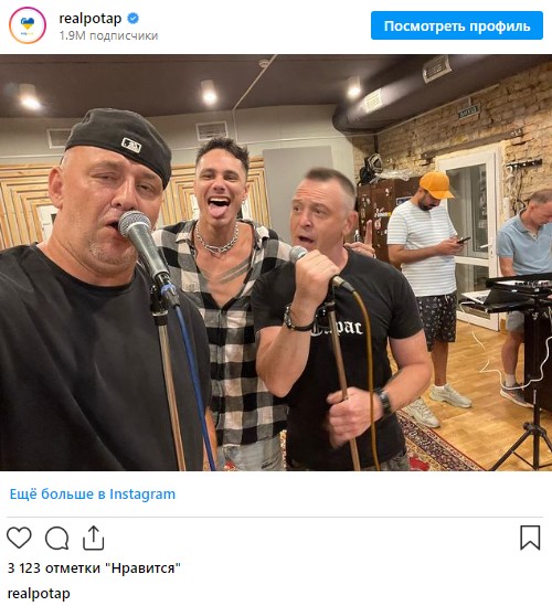 В своем Instagram Потап опубликовал фото из студии звукозаписи, на котором появился в компании своих музыкантов из группы Mozgi. Похоже, артисты записывают новую песню, или же просто дурачатся, взяв в руки микрофоны.