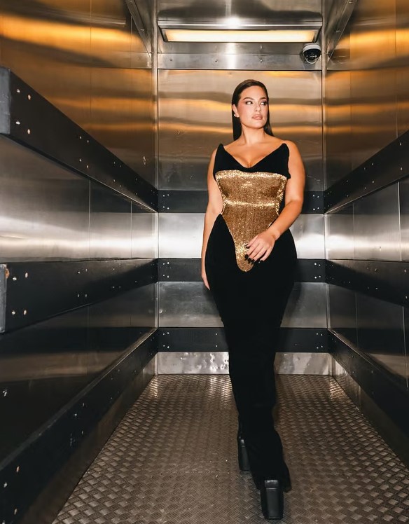 Пышнотелая Эшли Грэм показала фотосессию в золотом корсете
