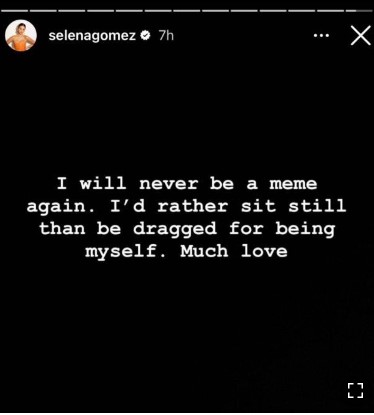 "Я никогда больше не стану мемом. Я лучше буду сидеть неподвижно, чем меня будут осуждать за то, что я являюсь сама собой", — возмутилась артистка.
