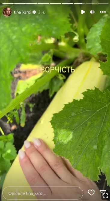 Звезда поделилась короткими видео, где осматривает урожай: "А кого я нашла? Лалала, берегись!" – говорит в видео Тина, похлопывая кабачки.