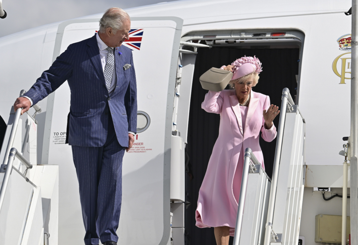 В аэропорту Чарльза и Камиллу приветствовала премьер-министр Франции Элизабет Борн от имени президента Эммануэля Макрона и правительства Франции. А также посол Великобритании во Франции Ее Превосходительство дама Менна Роулингс и посол Франции в Соединенном Королевстве Ее Превосходительство Элен Треэ-Дюшен.