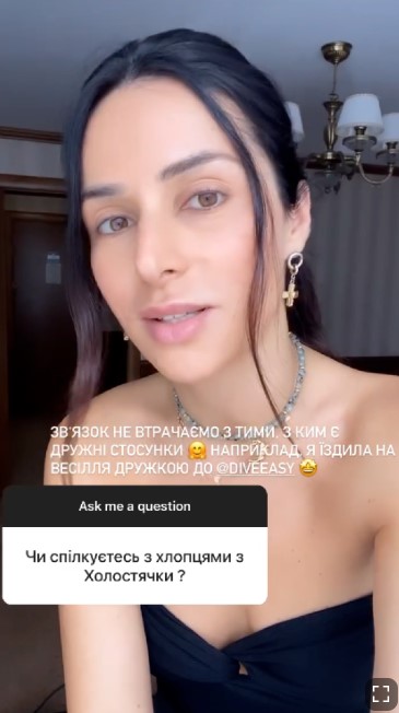 Кроме того, певица ответила, поддерживает ли связь с кем-либо из участников проекта "Холостячка-2", в котором она была главной героиней. Как призналась Злата, она до сих пор общается с Андреем Хветкевичем, у которого была на свадьбе в Мексике, а также Дмитрием Шевченко.