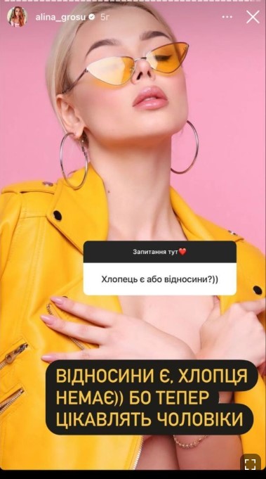 Также Алина Гросу призналась, что сейчас находится в отношениях. Однако своего избранника знаменитость скрывает.