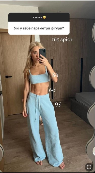 В своих Instagram-stories знаменитость пообщалась со своими поклонниками и ответила на вопросы о своей фигуре. Квиткова призналась, что сейчас имеет почти эталонные параметры – бюст 85 сантиметров, талию 60, а бедра 95 при росте 165 сантиметров.