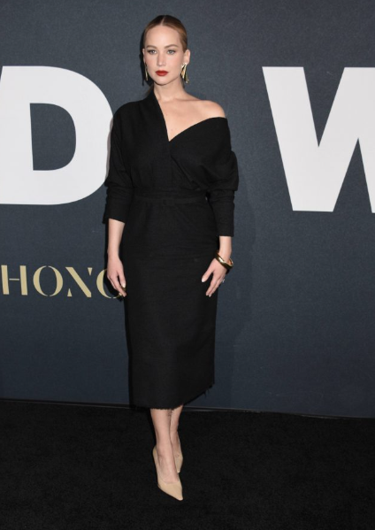 Звезда «Голодных игр» появилась на церемонии WWD Honors. Для своего выхода Лоуренс выбрала черное платье Dior, которое дополнила бежевыми лодочками.