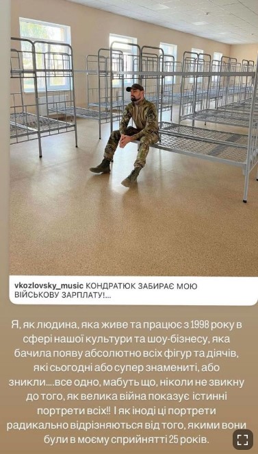 В своих Instagram-stories знаменитость отреагировала на пост певца, в котором он рассказал о том, что бывший продюсер забирает его военную зарплату в качестве компенсации штрафа за нарушение авторского права.