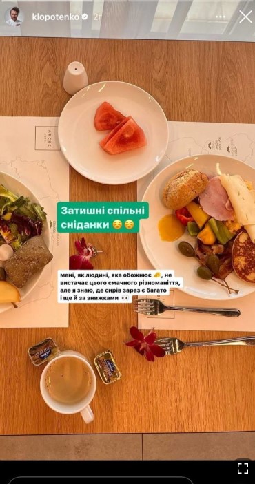 Впоследствии Клопотенко опубликовал фото, на котором показал два блюда. Как отметил повар, он обожает совместные завтраки.