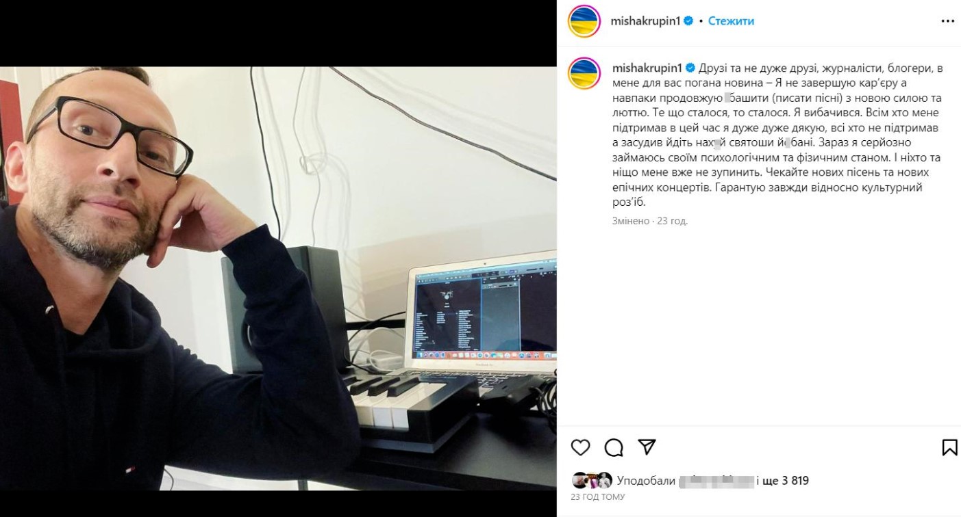 Миша Крупин дал официальный комментарий после заявлений о завершении своей карьеры.