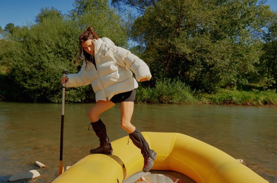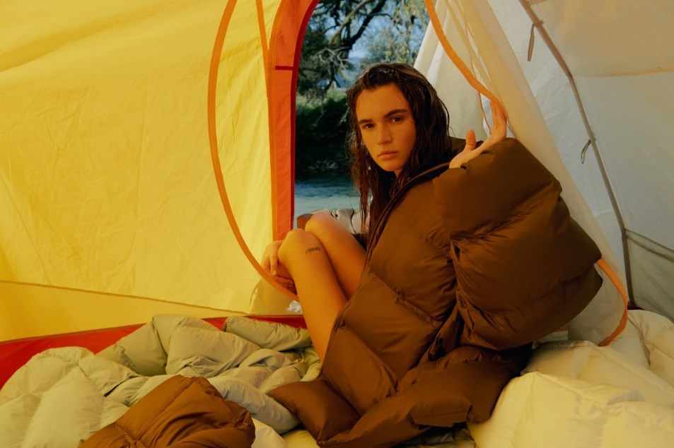 Кацурина в вещах собственного бренда позировала с голыми ногами в палатке и лодке