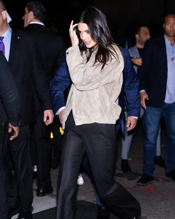 Как оказалось, 22 октября Кендалл Дженнер посетила вечеринку SNL в Нью-Йорке. Для выхода в люди модель выбрала сдержанный образ. На ней были черные брюки обычного кроя, черный короткий топ, который слегка оголил живот, и серая объемная куртка. При этом вместо каблуков модель отдала предпочтение черные лакированным туфлям на низком ходу.