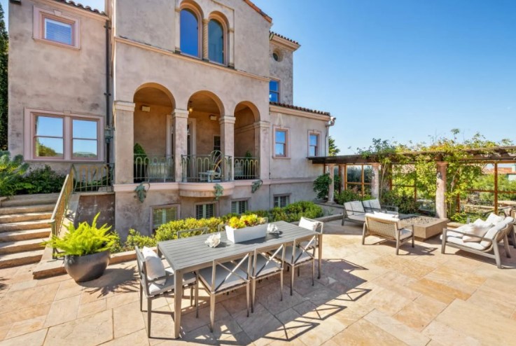 Дом на угловом участке, расположенный за внушительными воротами и крепкими стенами, представляет собой архитектурный шедевр. Построенная примерно в 1926 году резиденция первоначально принадлежала Оливеру Дж. Олсону. Здание в стиле итальянского ренессанса занимает площадь около 985 квадратных метров на трех уровнях, откуда открывается вид на мост Золотые Ворота, мыс Марин и захватывающие дух просторы залива Сан-Франциско.