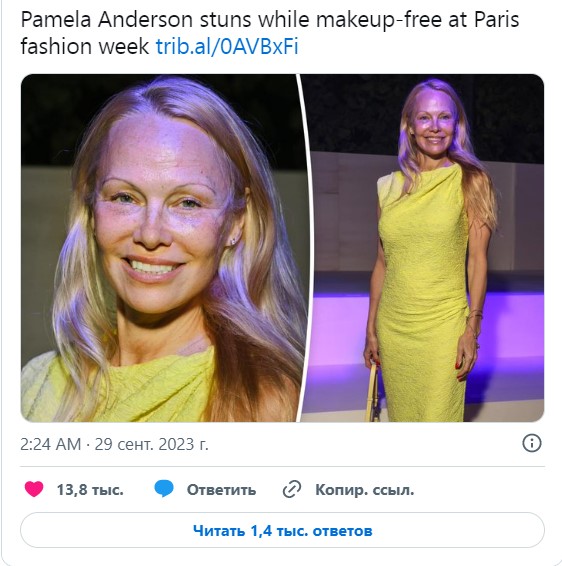 Памела Андерсон ошеломила образом без капли макияжа на неделе моды в Париже.