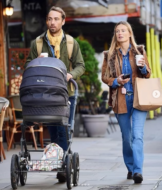 36-летний Джеймс Миддлтон, младший брат принцессы Уэльской, и его жена Ализе Тевене недавно стали родителями. Пару, гуляющую с коляской, заметили в Лондоне.