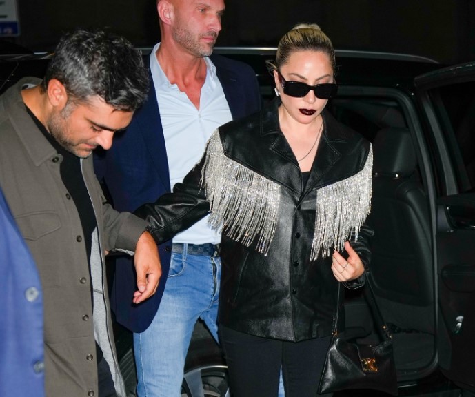 В этот вечер на звезде были черные джинсы-скинни, кожаная куртка с бахромой из стразов и ботинки на платформе. Дополнили образ сумка и солнцезащитные очки от Céline, а также несколько украшений. Свои волосы Леди Гага собрала в высокий пучок и сделала макияж с акцентом на губы.