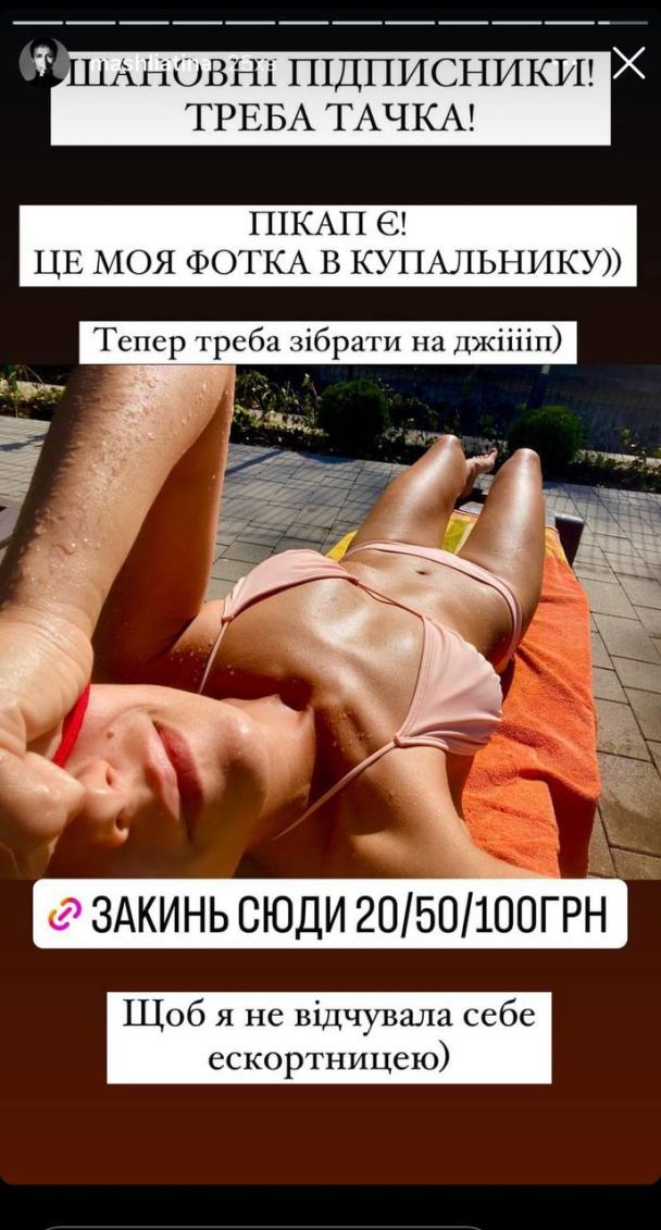 Пикантный кадр Александра опубликовала не просто так. Знаменитость хотела привлечь внимание подписчиков к своему сбору средств на авто для ВСУ. В обмен на снимок в купальнике артистка попросила пользователей перевести деньги на джип для украинских защитников.