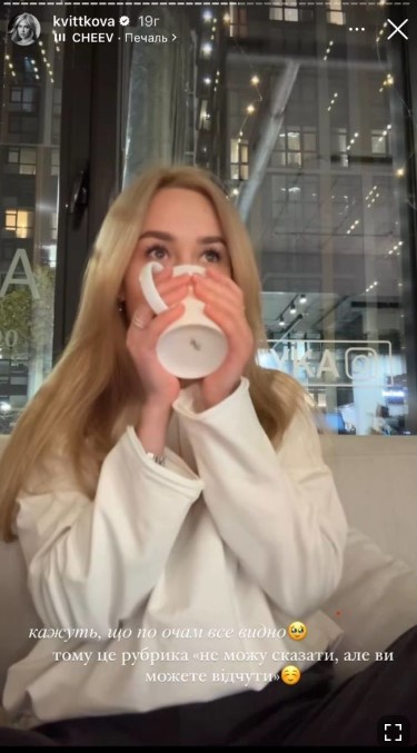 Кстати, кадры Квиткова сопроводила песней певца Cheev — "Печаль". В композиции, в частности, есть следующие строки: "Ми удвох і цього нам достатньо. Любити, як востаннє. Адже я з тобою, бо я з тобою".
