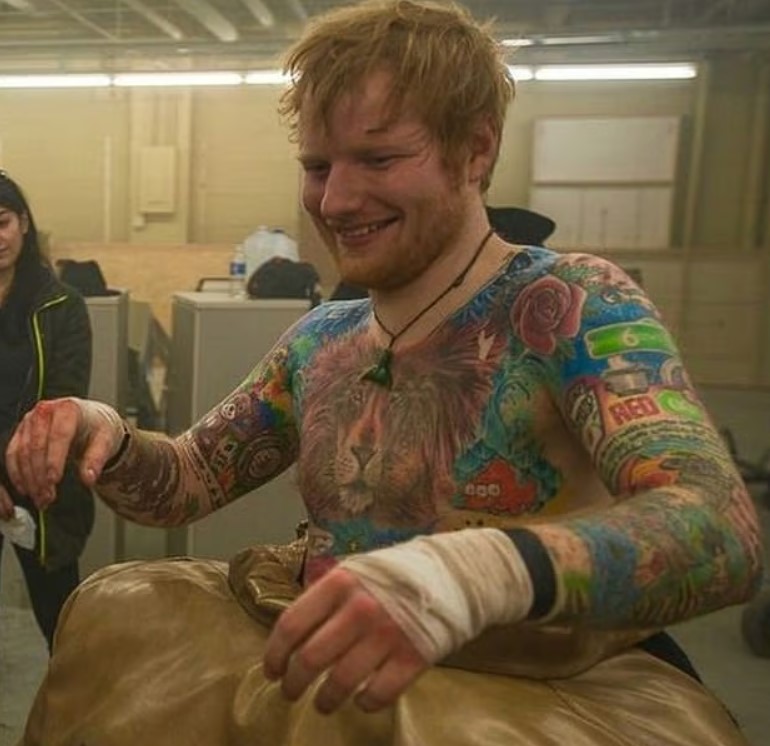 Эд Ширан опубликовал фото топлесс и показал большинство своих татуировок