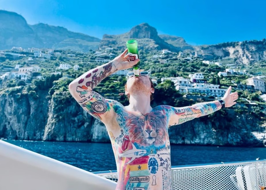 Один из самых богатых исполнителей в мире Эд Ширан не скрывает, что он большой фанат татуировок – у него их более 60! Большинство из них он продемонстрировал на фотографии, на которой исполнитель топлесс пьет пиво на катере в море.