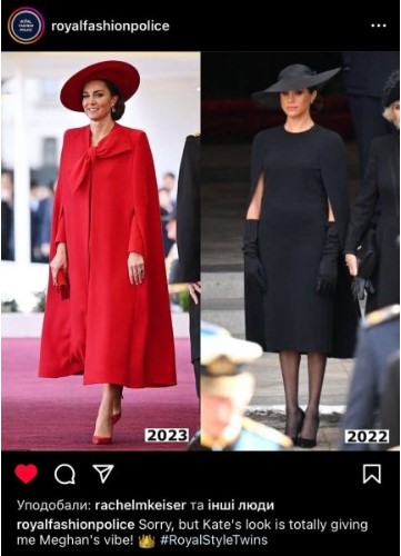 "Извините, но образ Кейт очень напоминает мне вайб Меган", — отметили в Royal Fashion Police.