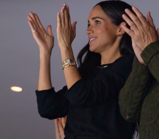 Герцогиня Сассекская впервые появилась с новым украшением на хоккейном матче в Канаде.