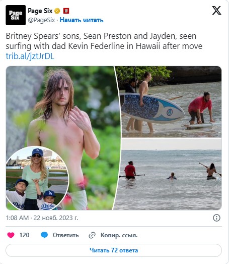 Сыновей Бритни Спирс первый раз увидели на Гавайях