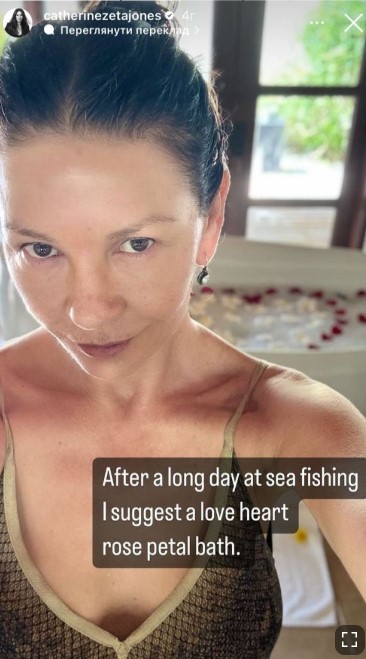 К слову, знаменитость как раз собиралась принять ванную с лепестками красных роз. Как пояснила Зета-Джонс, она находилась на море, где ловила рыбу. После такого продуктивного дня актрисе очень захотелось отдохнуть, полежав в ванной.