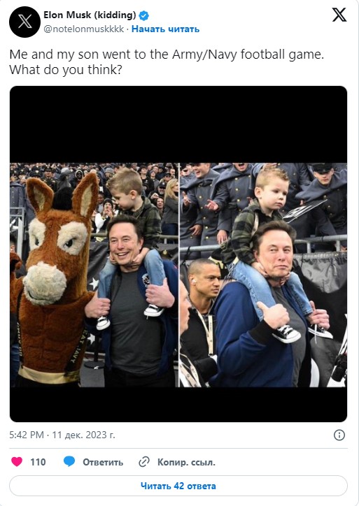 Когда бизнесмена спросили, за какую команду он болеет, Маск ответил: "Армия".